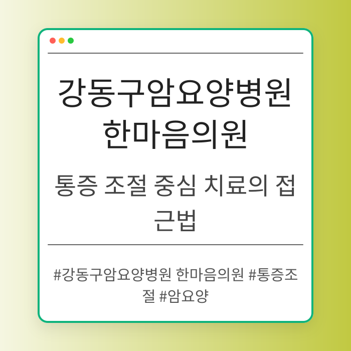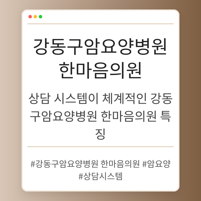 강동구암요양병원 한마음의원은 체계적인 상담 시스템을 통해 암 환자에게 맞춤 치료를 제공하는 병원입니다. 10여 년간 전문성을 쌓아온 이곳은 환자들의 편안한 회복을