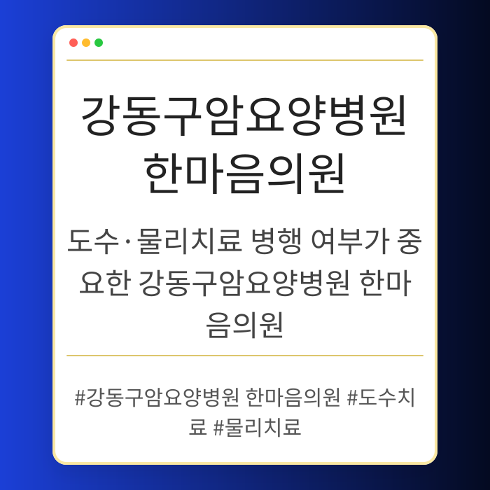 도수·물리치료 병행 여부가 중요한 강동구암요양병원 한마음의원