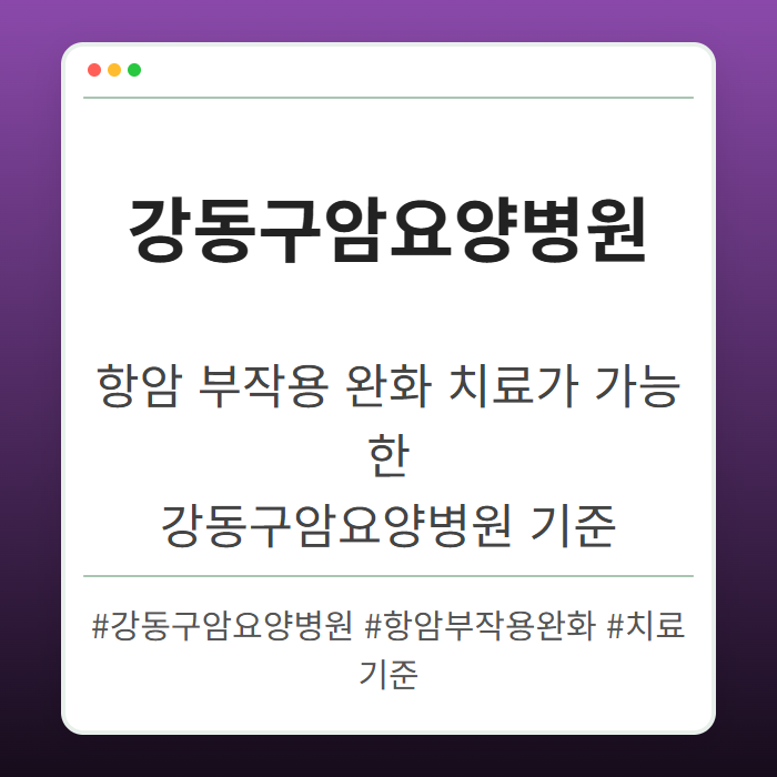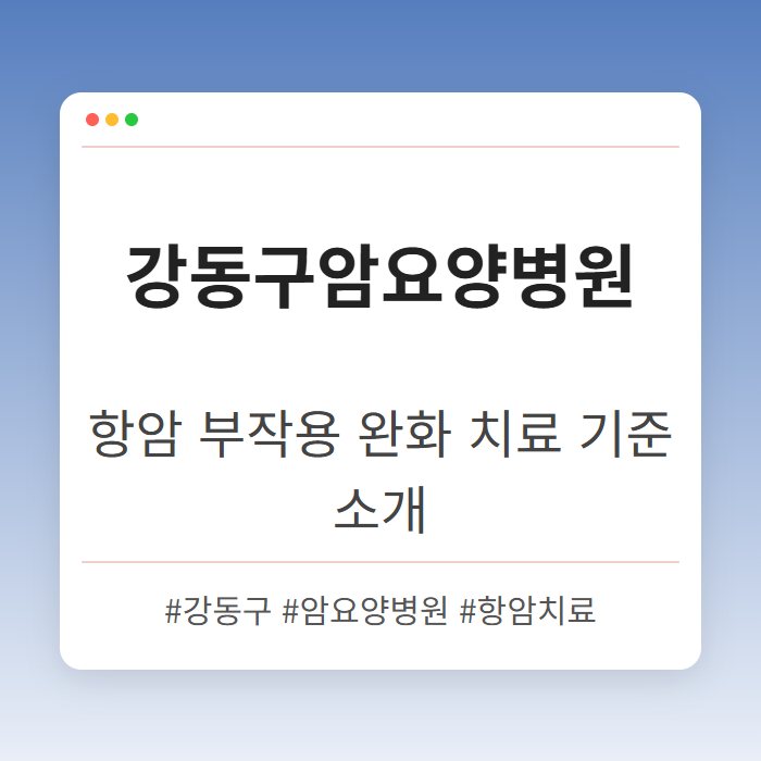 강동구암요양병원은 항암 치료 중 발생하는 부작용을 완화하는 다양한 치료 옵션을 제공합니다. 본 글에서는 병원의 기준과 치료 방법에 대해 자세히 살펴보겠습니다.