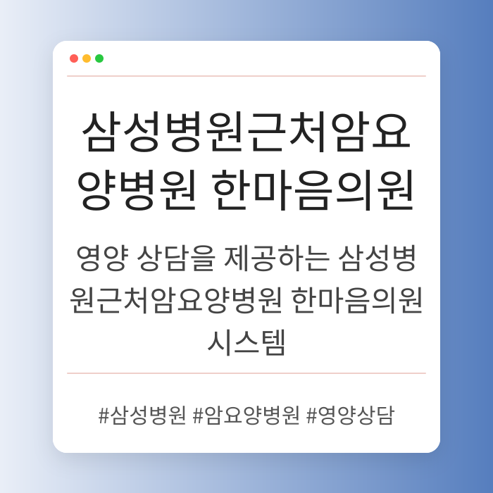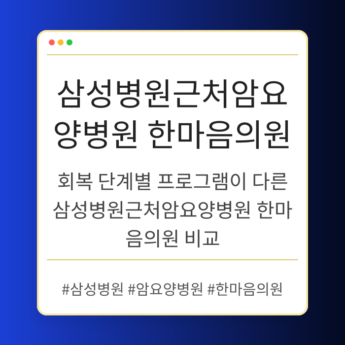 삼성병원 근처에서 암 요양 치료를 받기 위한 의료기관 선택은 중요한 결정을 요구합니다. 본 글에서는 회복 단계별로 제공되는 프로그램과 서비스가 다른
